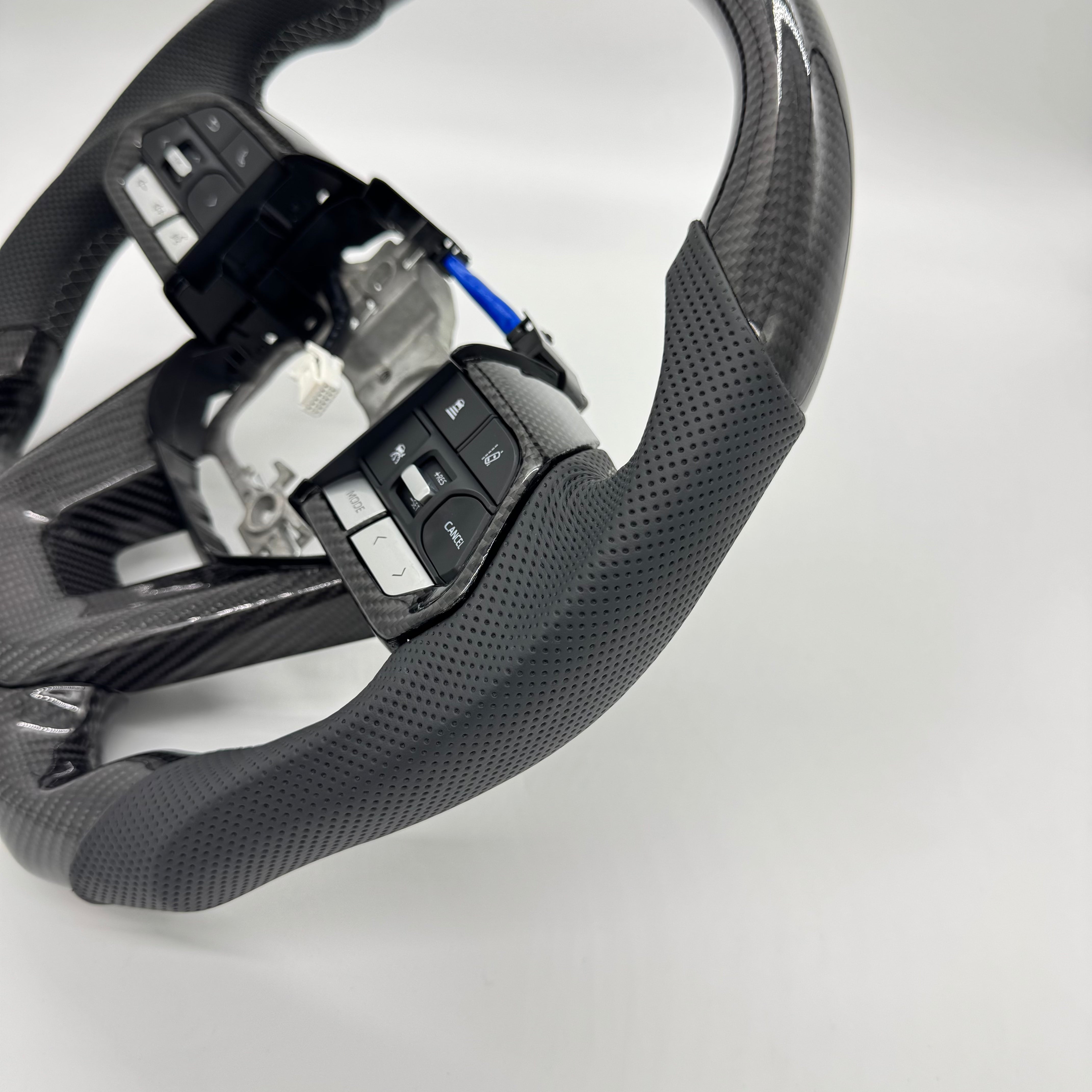 The factory wheel is known for wear, peeling, and poor feel over time. We solved that — then went a step further. Sporty grips for confident handling, perforated leather for premium comfort, and Black contrast stitching for a clean, modern flair. Built to last. Designed to perform.