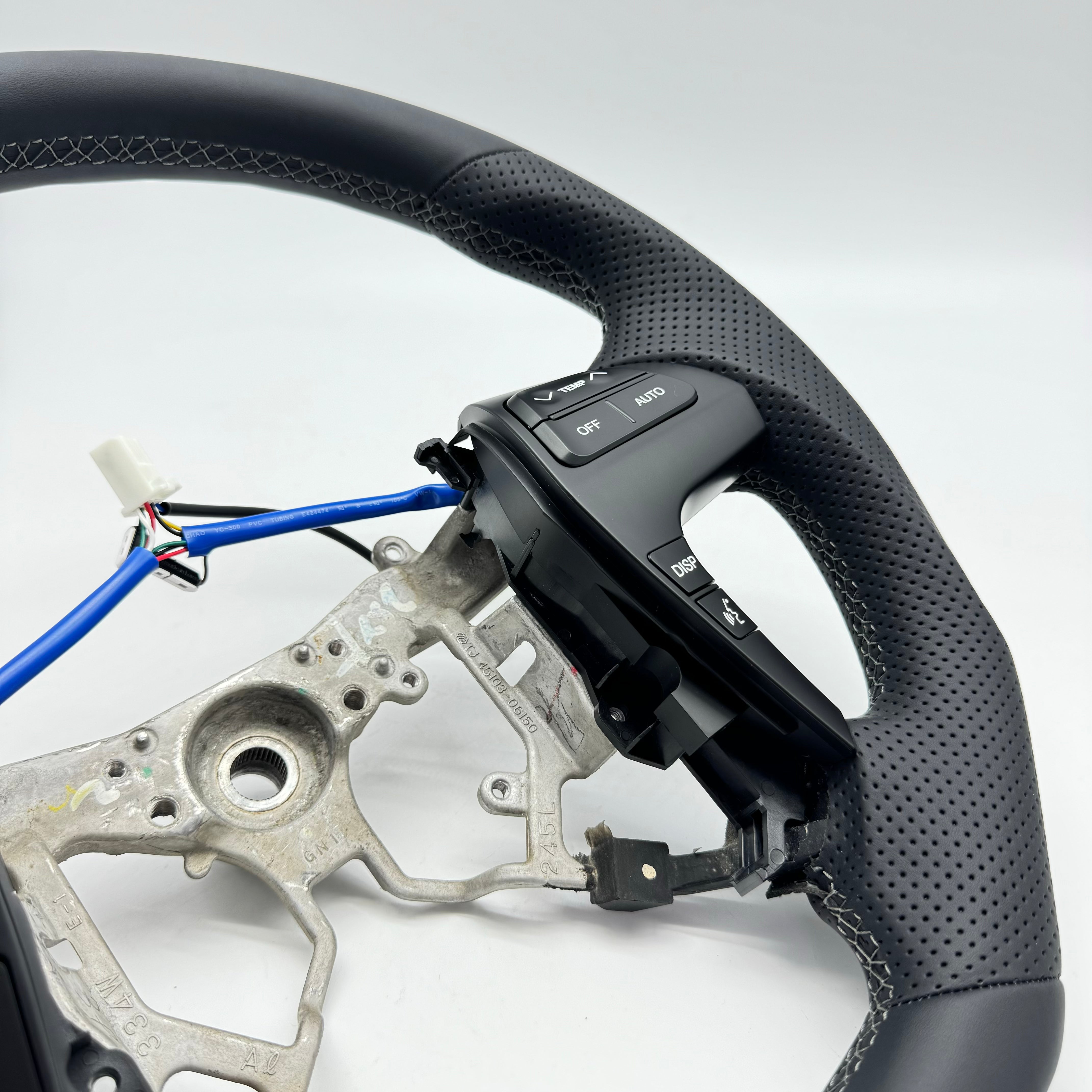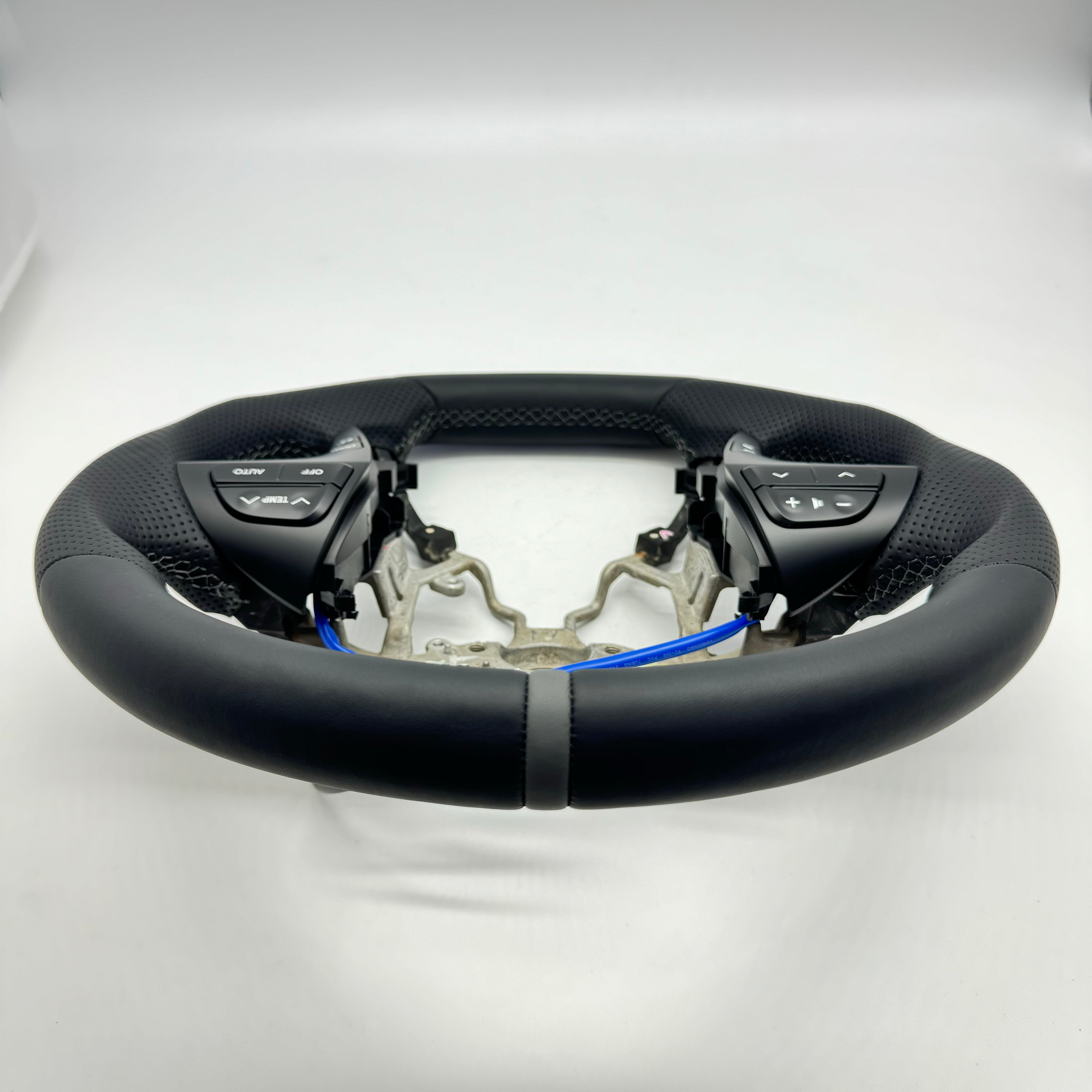 The factory wheel is known for wear, peeling, and poor feel over time. We solved that — then went a step further. Sporty grips for confident handling, perforated leather for premium comfort, and Nardo Grey contrast stitching for a clean, modern flair. Built to last. Designed to perform.